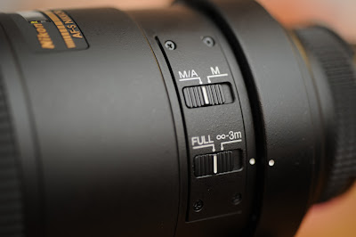 下:光圈環,這個光圈環的寬度是所有的鏡頭中最寬的!也是少數af-s鏡頭中,具有光圈環的鏡頭,所以是支援Ai的!這系統的鏡頭,可是可以支援最多nikon 相機的!從50年前的大F(縮光圈測光)、F2、F3、F4、F5、F6,到最近的D3通通可以支援,如果把光圈環上的F5.6的二個定位點上加上免耳,連Non-ai的F接環的相機也可以連動測光,真的Nikon f接環通吃的鏡頭,不像現在G鏡,沒有辦法用在之前較舊的機身上。
