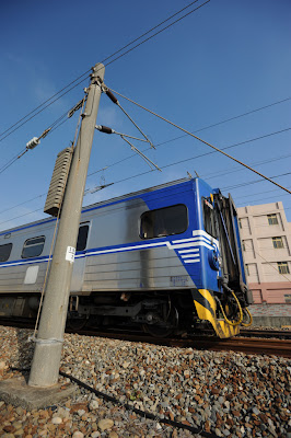 上圖是用nikon af-s 17-35mm f2.8的17端,在清水站南拍的,整個車的車頭藍色和天空藍搭在一起,感覺真的很協調。