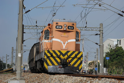 下:R54,南下煤列,空車,通過清水站南,這是用nikon 80-400那顆鏡頭拍的,其實這顆鏡頭配上D700後,再用3D追焦,來拍行進間的火車,基本上從高速的自強號到慢速貨列都還算追得上。