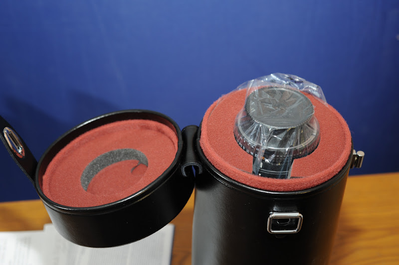 下:把箱子內的東西拿出來,有一個鏡頭的皮桶,還有幾份文件,一本說明書還有背帶。沒有什麼特別了不起的東西。