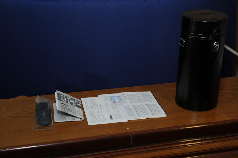 下:把鏡頭拿出來,這個「牌子」,可是用螺絲鎖上去的呢!跟有300MM F4之類的用貼上去的不太一樣,表面的處理也非常漂亮,完全是那個年代(1993年)的標準設計。右邊那個旋鈕是三腳架固定的螺絲,腳架環是拆不下來的。不過,這支鏡頭應該是2006年以後才生產的吧!?這支鏡頭可是nikon現售的非MF鏡頭中,設計年代最古老的幾支。