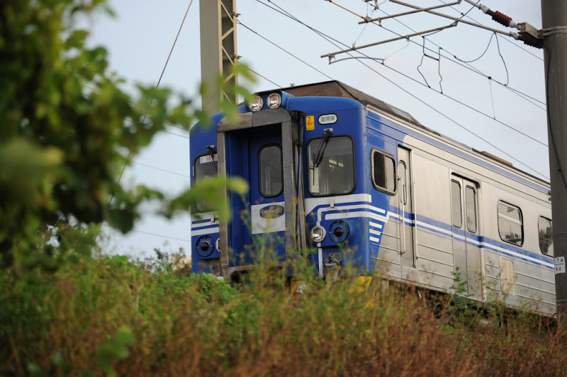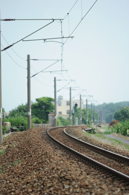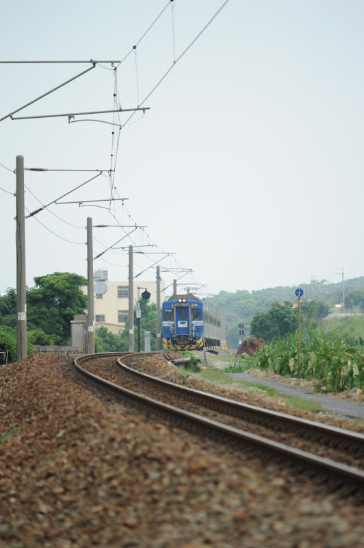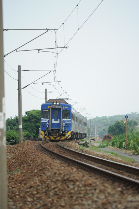 下,應該是2420次的北上區間車(彰化到新竹),這個角度看起來有一點像是沒有人開的火車。nikon af-d 80-200mm f2.8,光圈2.8,焦段:100mm,快門1/500秒,小黑三在這個焦段畫質、銳利度頗佳。