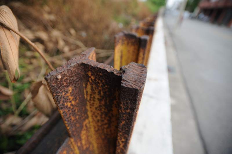 下:等火車的時候做什麼呢?當然就隨地亂拍囉!鋼軌的柵欄。17-35mm,用17mm端,F2.8,1/160秒,iso200,