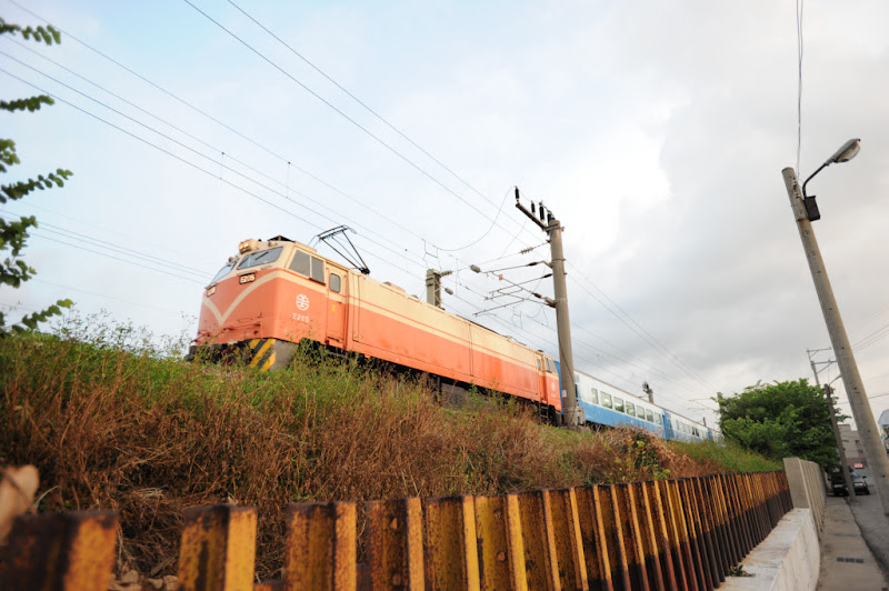 下:今天早上,起床的時間不算早,不過,還趕得到去拍早上第一班的南下的13次莒光號,這個點早上拍南下的列車,還算不錯。但是,通常這個點通常因為起不來,所以很少早上來拍,整列都是橘色的,感覺不錯,如果天空的顏色是藍色的話,那會更好。用nikon af micro 200mm f4 D+d700拍的照片。